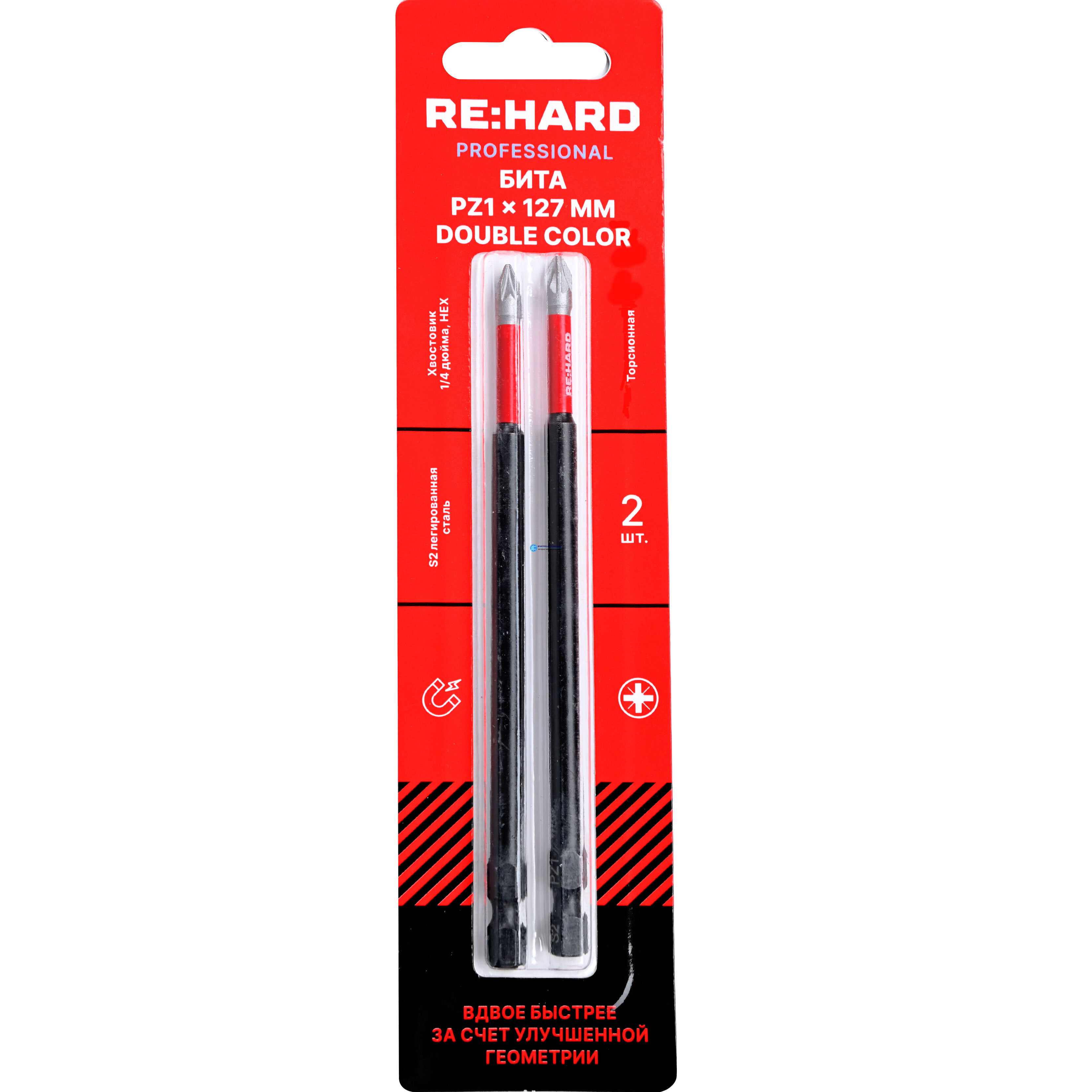 Бита для шуруповерта торсионная (ударная) PZ1х127 мм двойной цвет S2, 2 шт. RH127PZ1TDC RE:HARD
