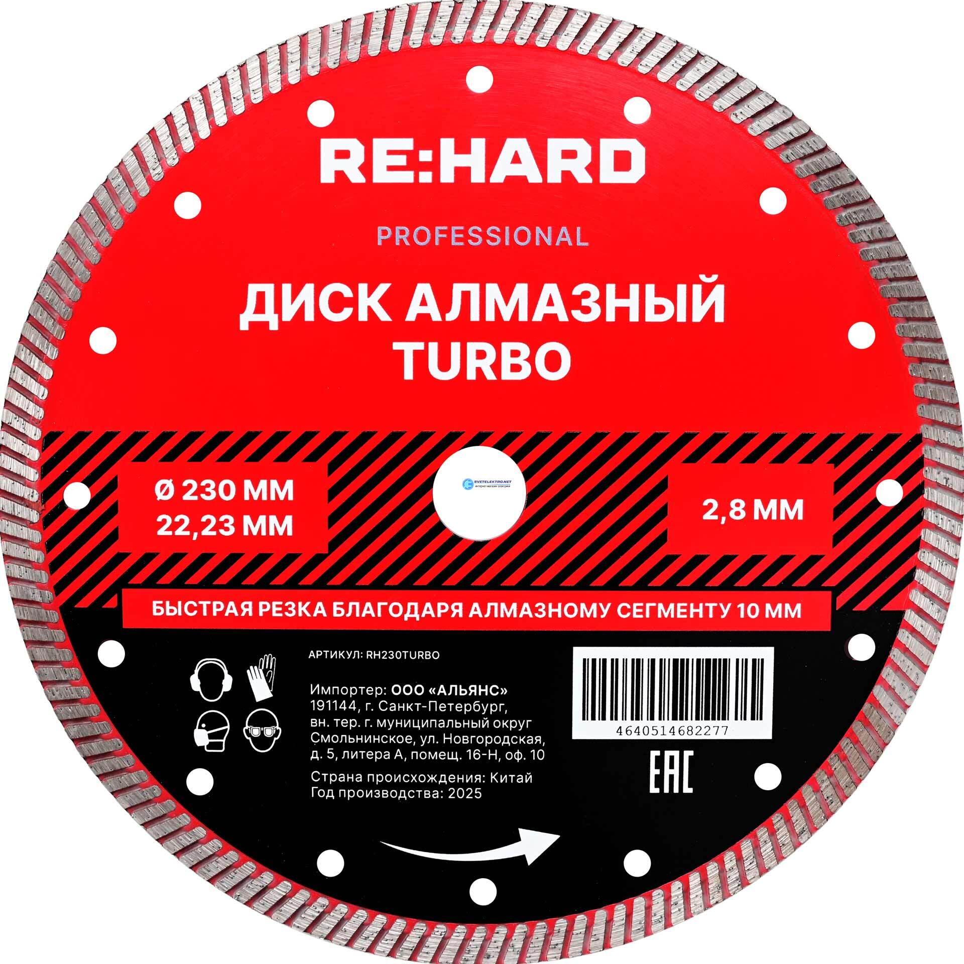 Диск алмазный 230х2.8х22.23 мм, код RH230TURBO, производитель RE:HARD