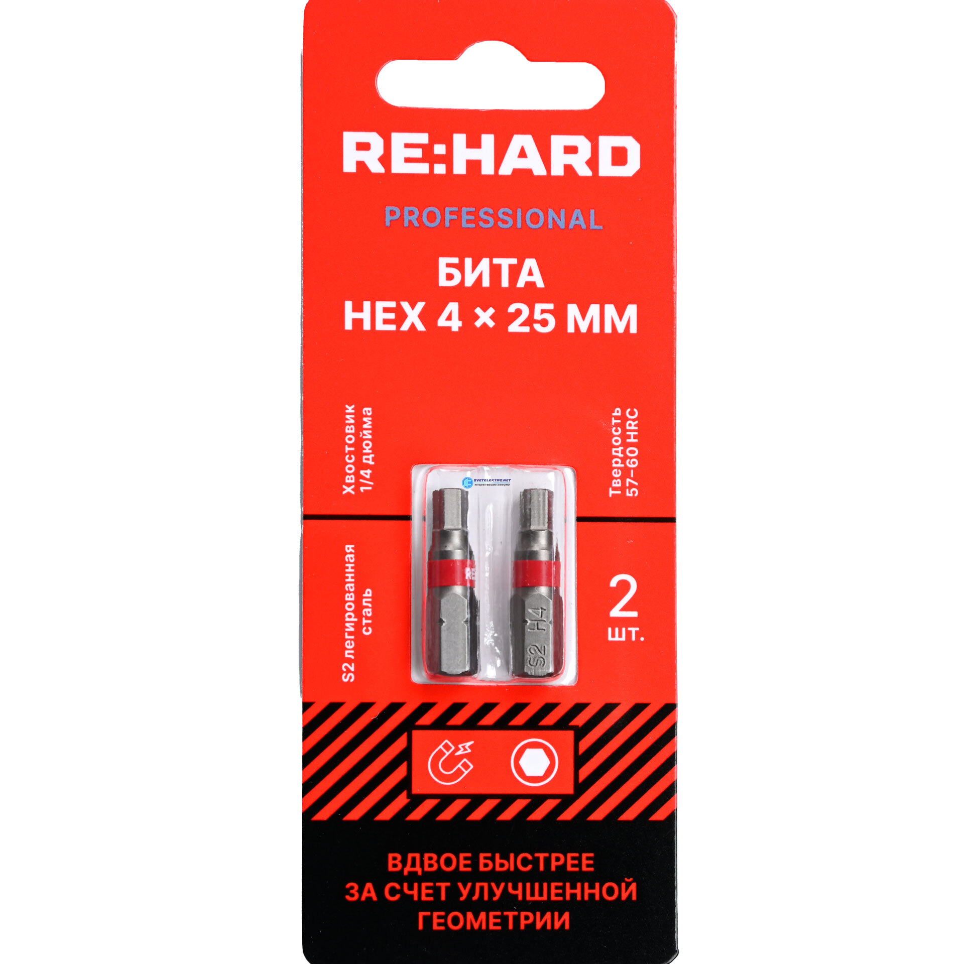 Бита для шуруповерта HEX 4х25 мм S2, 2 шт. RH25HEX4 RE:HARD