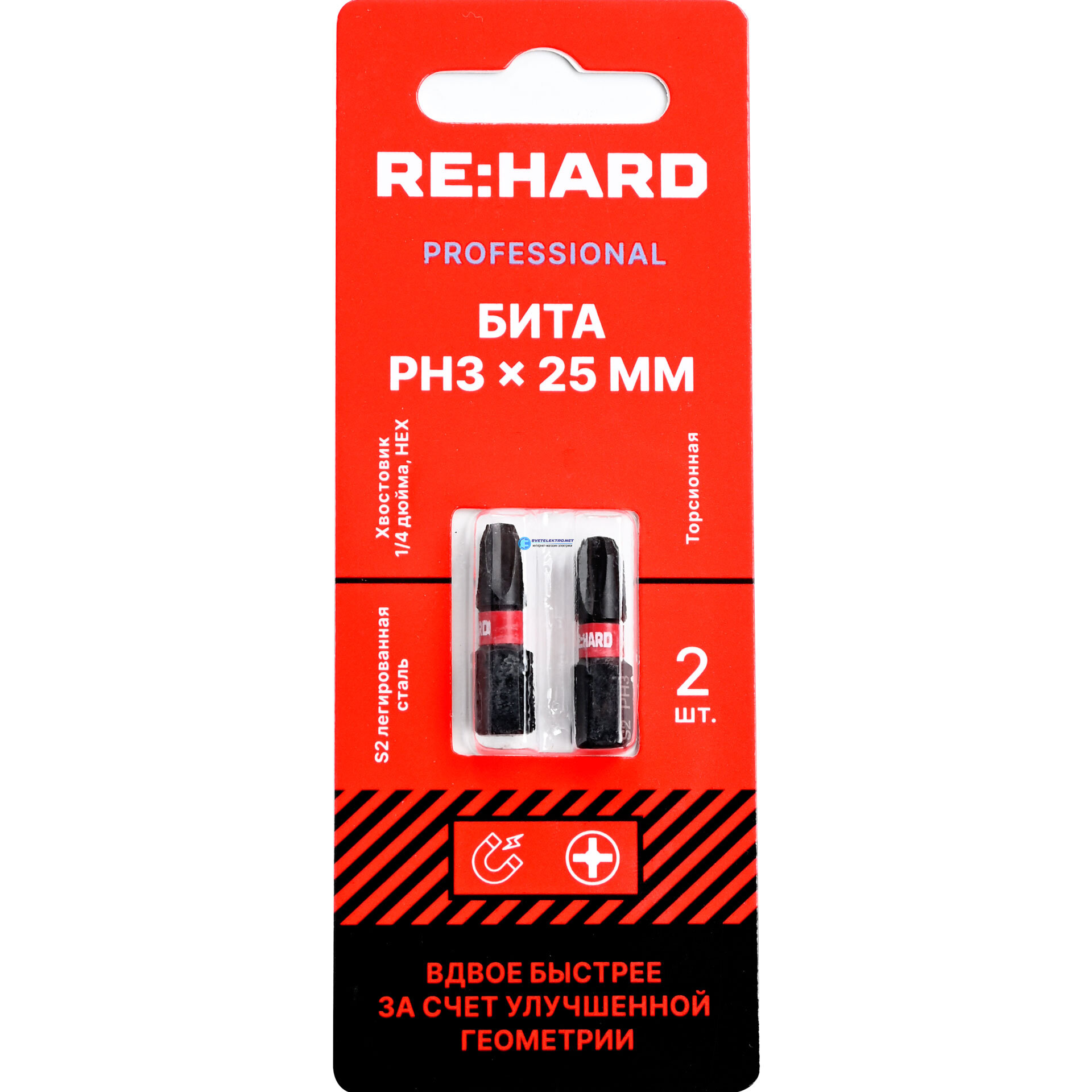 Бита для шуруповерта торсионная (ударная) PH3х25 мм S2, 2 шт. RH25PH3T RE:HARD