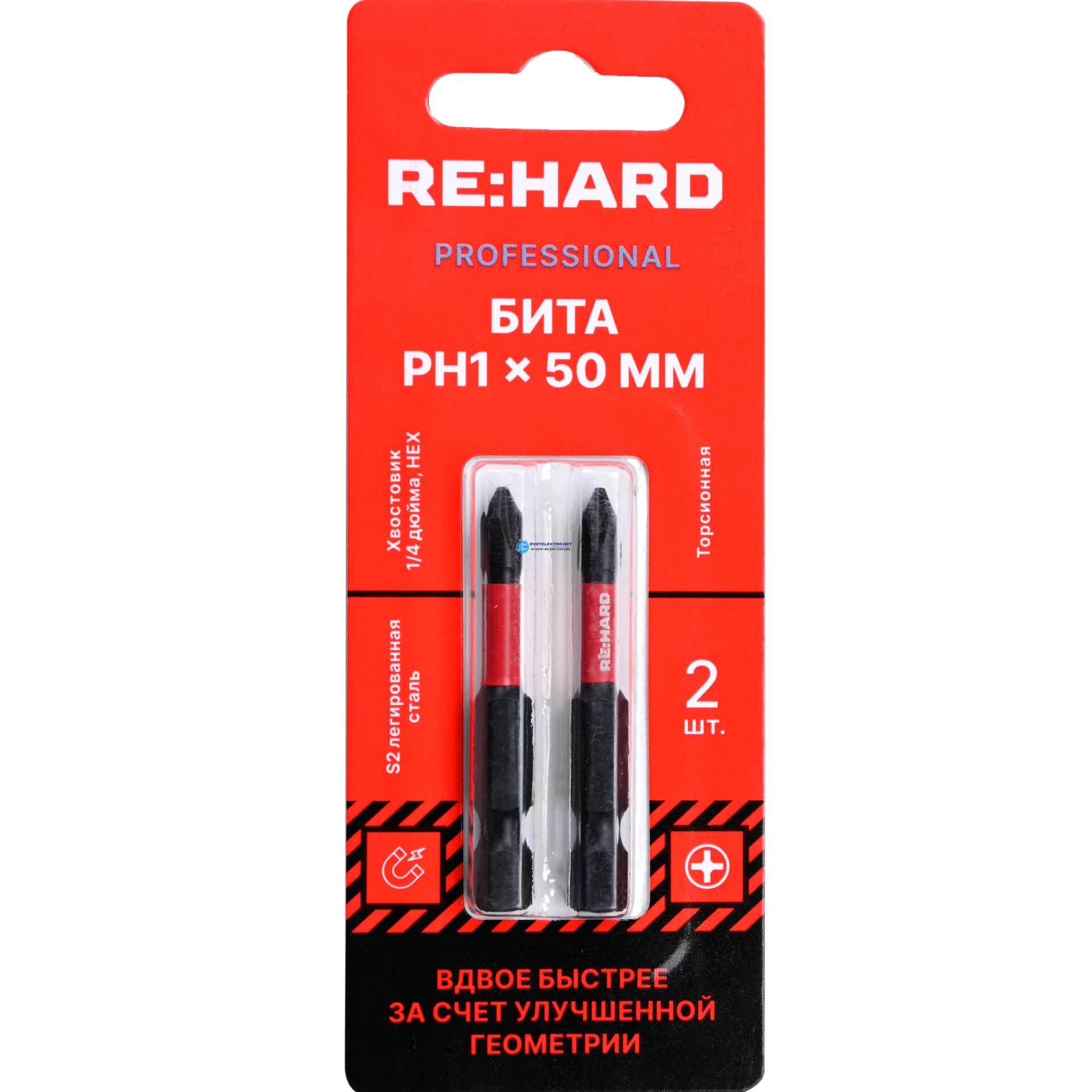 Бита для шуруповерта торсионная (ударная) PH1х50 мм S2, 2 шт., код RH50PH1T, производитель RE:HARD