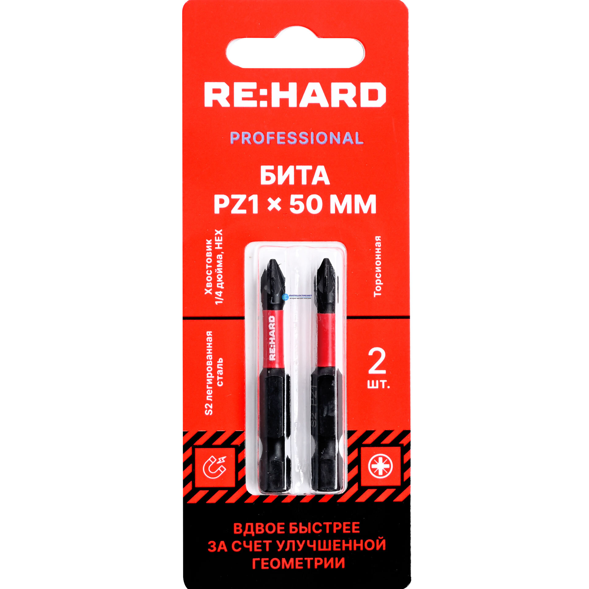 Бита для шуруповерта торсионная (ударная) PZ1х50 мм S2, 2 шт., код RH50PZ1T, производитель RE:HARD