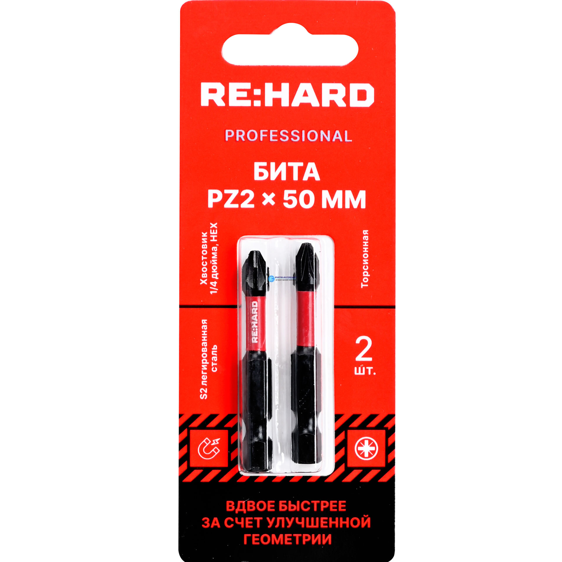 Бита для шуруповерта торсионная (ударная) PZ2х50 мм S2, 2 шт. RH50PZ2T RE:HARD