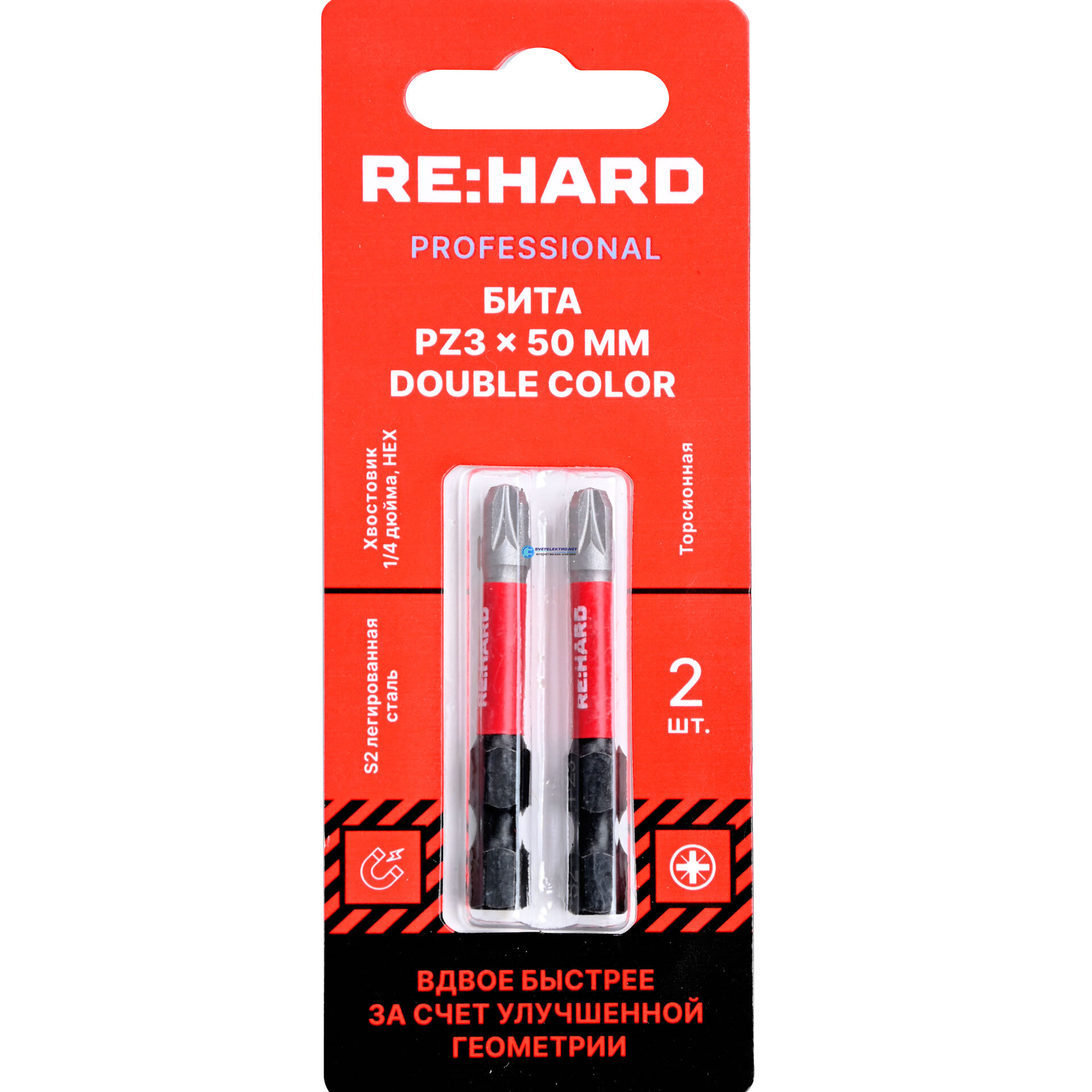 Бита для шуруповерта торсионная (ударная) PZ3х50 мм двойной цвет S2, 2 шт., код RH50PZ3TDC, производитель RE:HARD