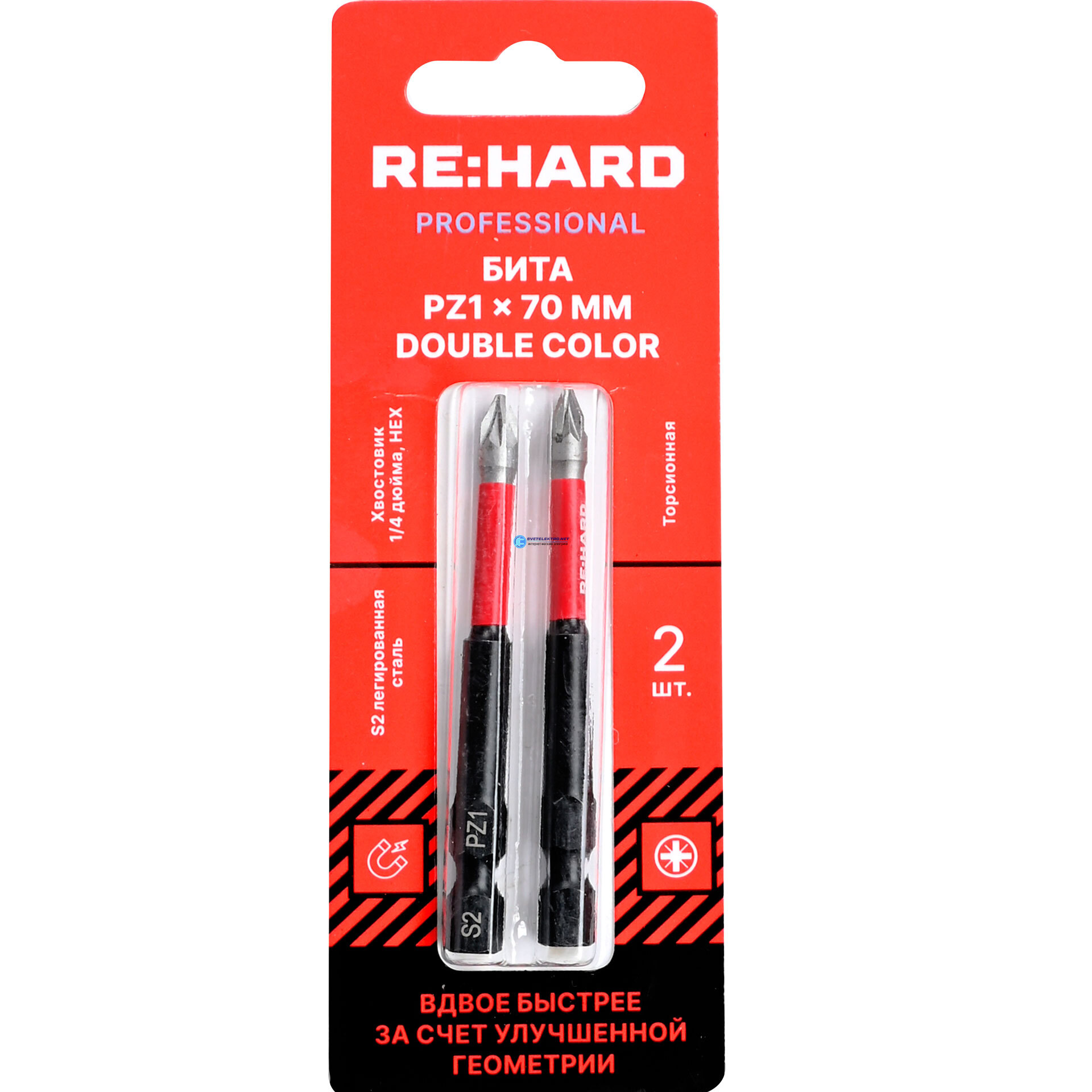 Бита для шуруповерта торсионная (ударная) PZ1х70 мм двойной цвет S2, 2 шт., код RH70PZ1TDC, производитель RE:HARD