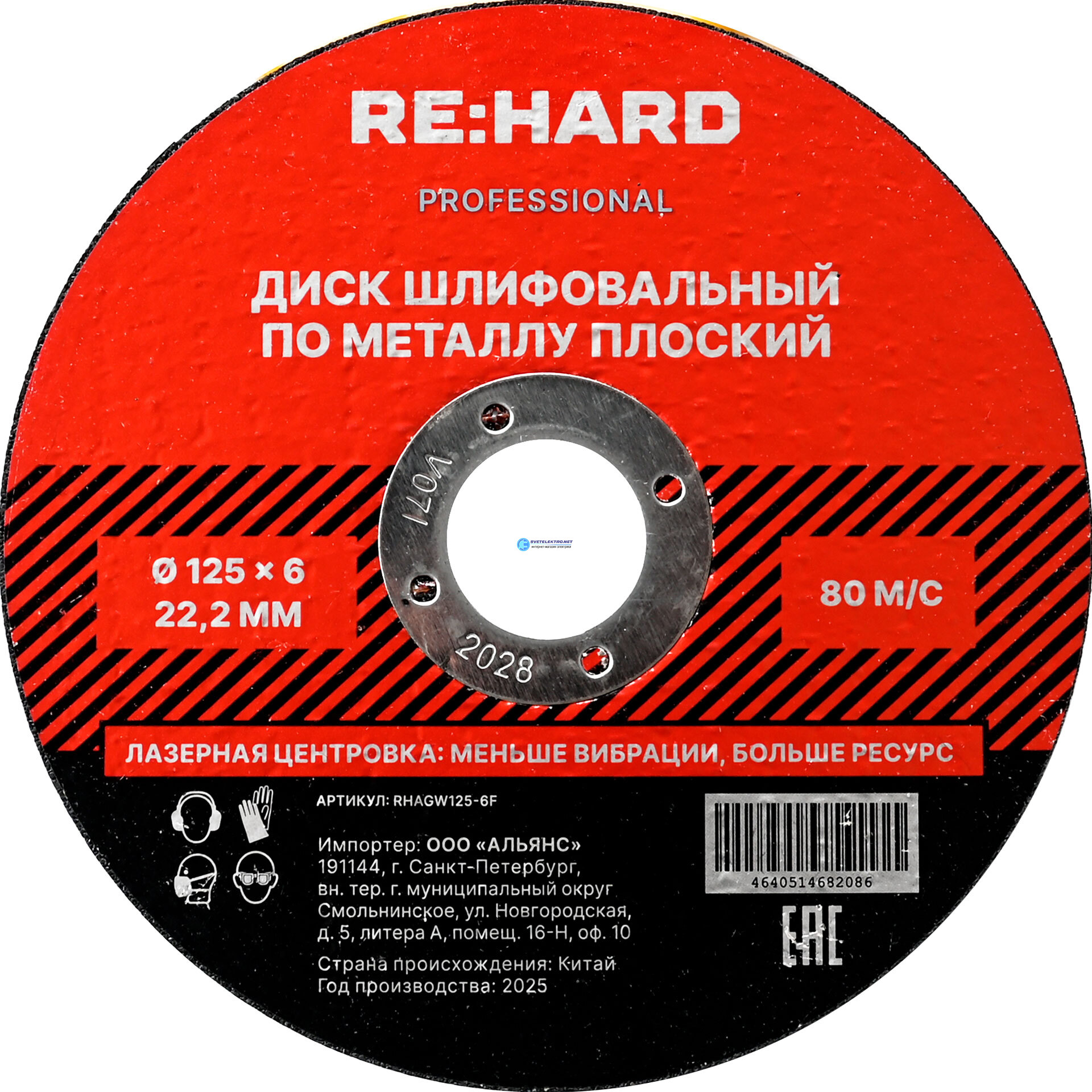 Диск шлифовальный абразивный по металлу 125х6х22.2 плоский, код RHAGW125-6F, производитель RE:HARD