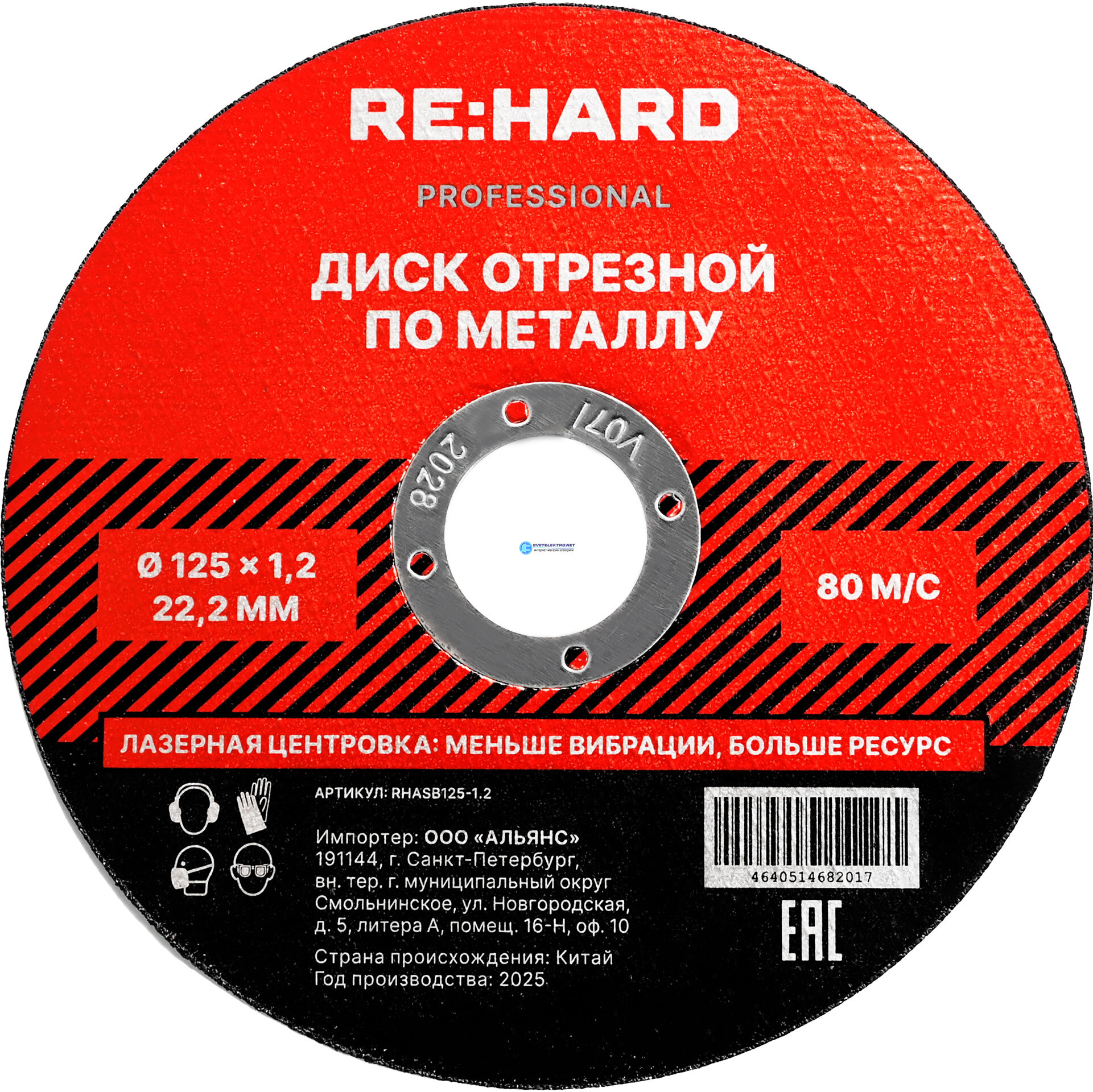 Диск отрезной абразивный по металлу 125х1.2х22.2 мм, код RHASB125-1.2, производитель RE:HARD