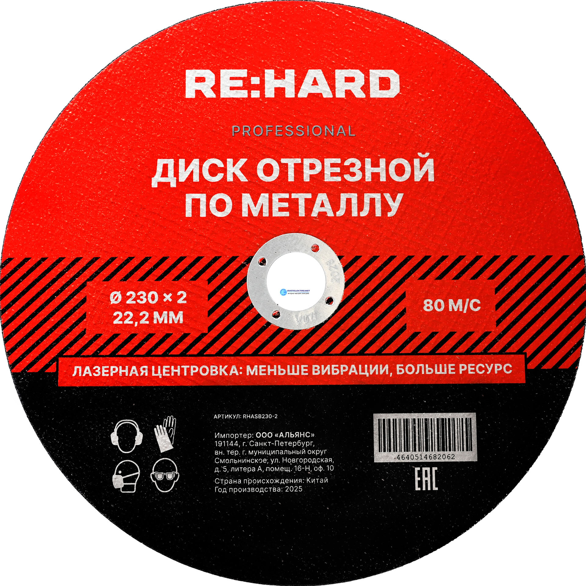 Диск отрезной абразивный по металлу 230х2х22.2 мм, код RHASB230-2, производитель RE:HARD
