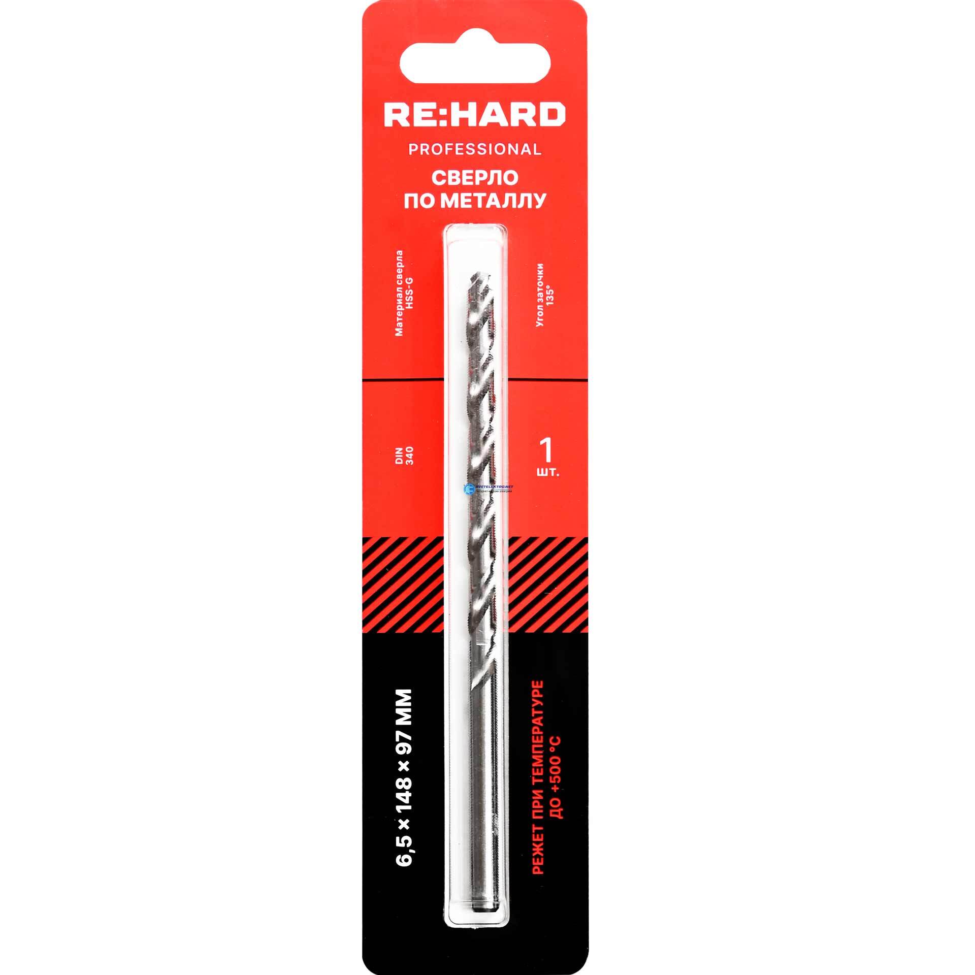 Сверло по металлу ц/х 6.5х148х97 HSS-G DIN 340 135 градусов, код RHHSSG65, производитель RE:HARD
