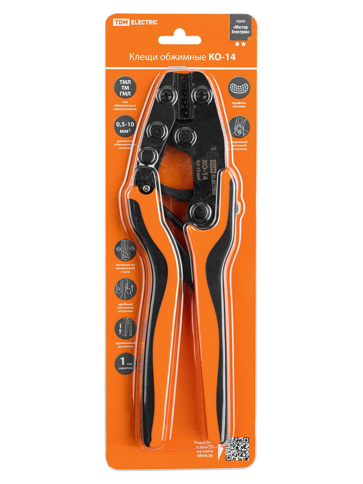Клещи обжимные КО-14, обжим неизолированных медных наконечников 0,5-10 мм?, ""МастерЭлектрик"", код SQ1001-0014, производитель TDM