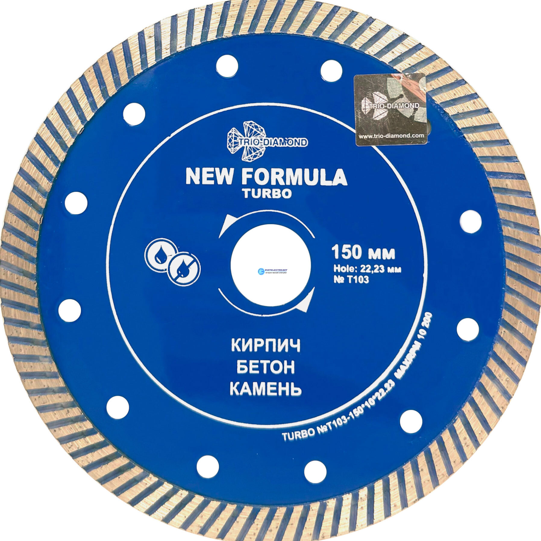 Диск алмазный турбо 150 мм, 22.23 мм, New Formula Turbo, сухой, мокрый рез., код T103, производитель Trio-Diamond