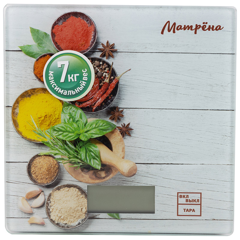 Весы кухонные электронные MA-033 до 7 кг, рисунок ''Специи'', код 101236, производитель Матрёна