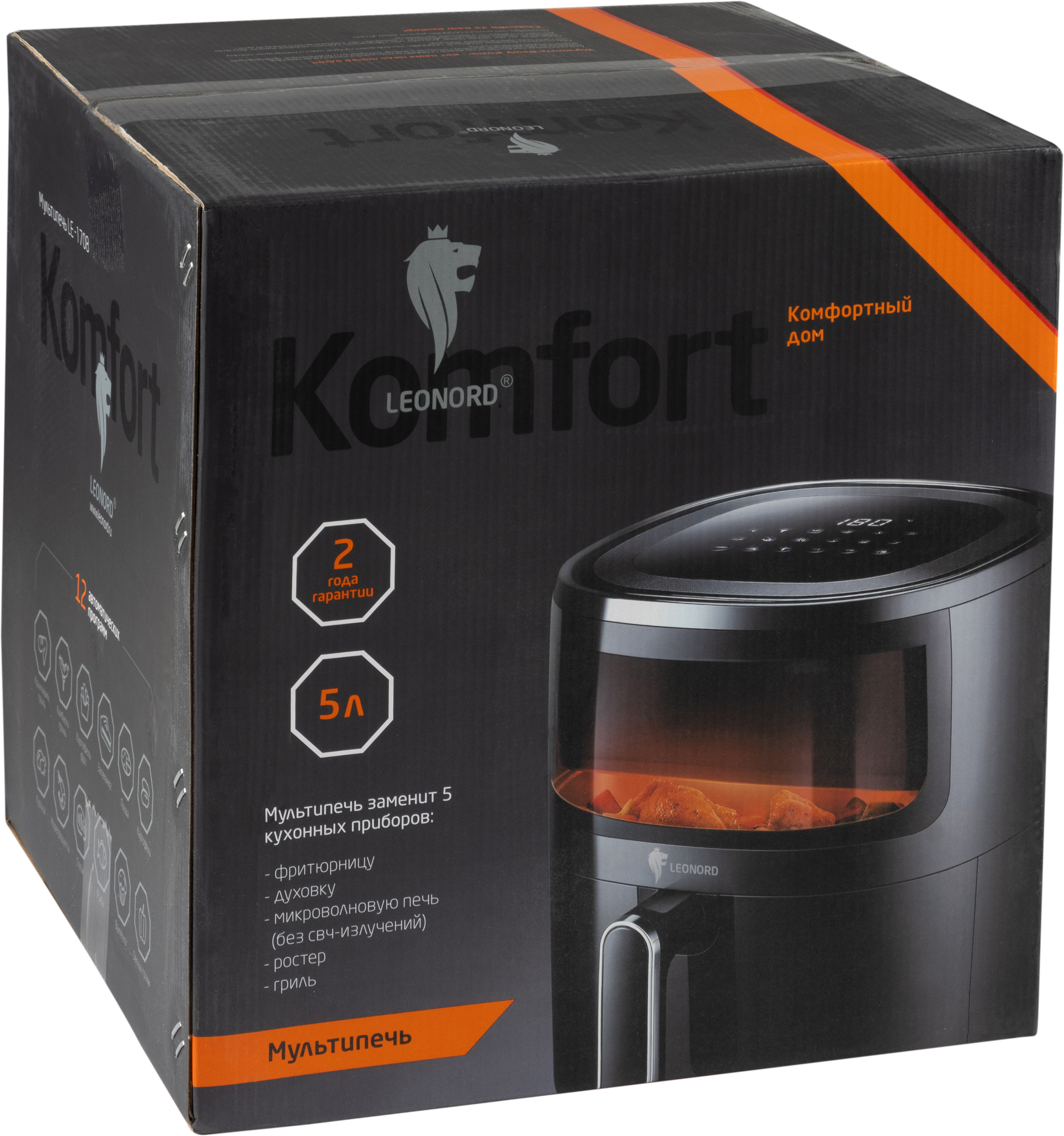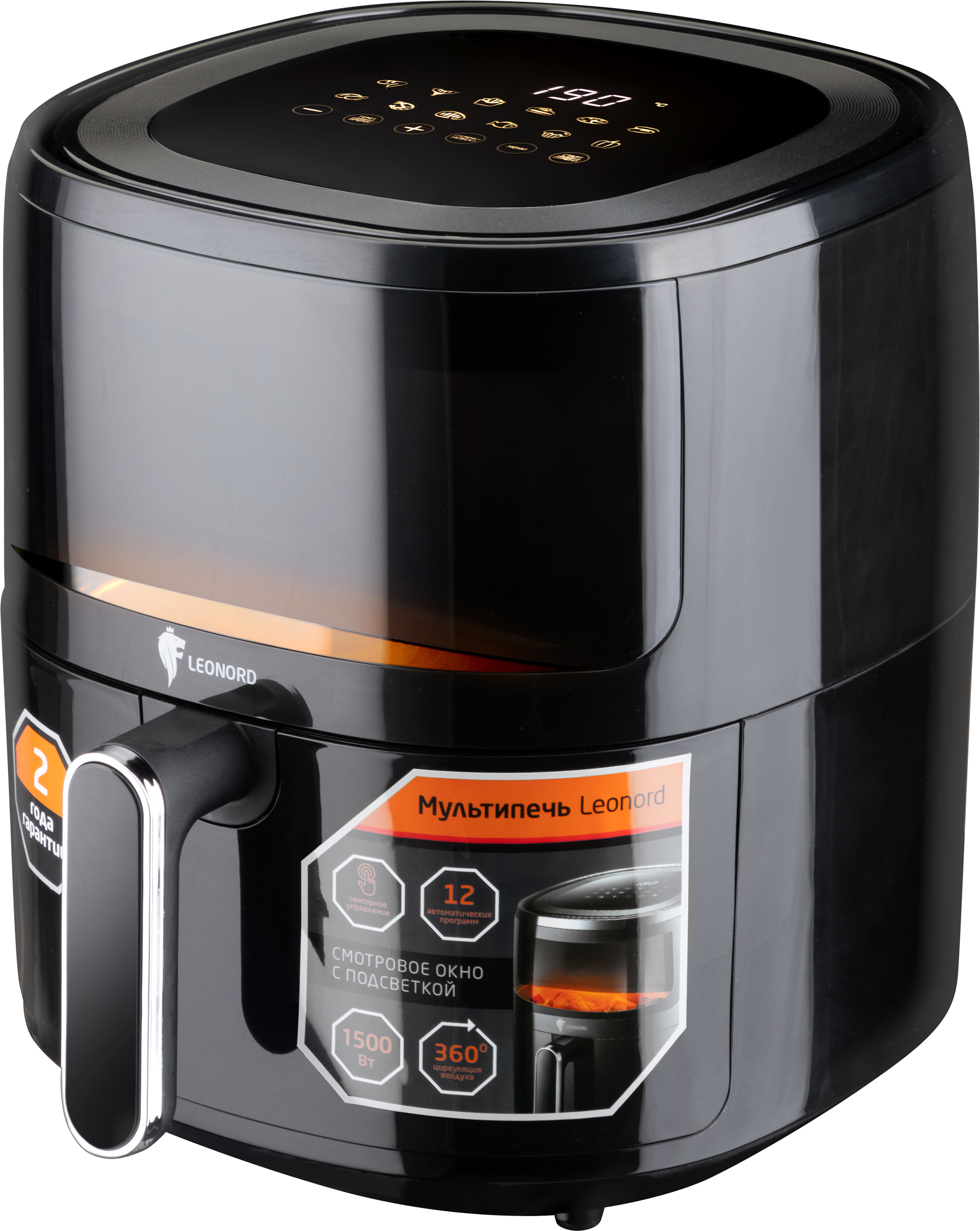 | Дополнительная информация: | Объем 5 л, Рабочий объем чаши с антипригарным покрытием 4.8 л, Сенсорная панель управления, 12 автоматических программ, Регулятор температуры 80-200?С, Таймер на 60 мин, Отсрочка запуска, Ненагревающаяся ручка, Смотровое окно с подсветкой, Автоотключение, Циркуляция воздуха 360?С, Книга рецептов в подарок, Мощность 1500Вт, Гарантия 2 года: |