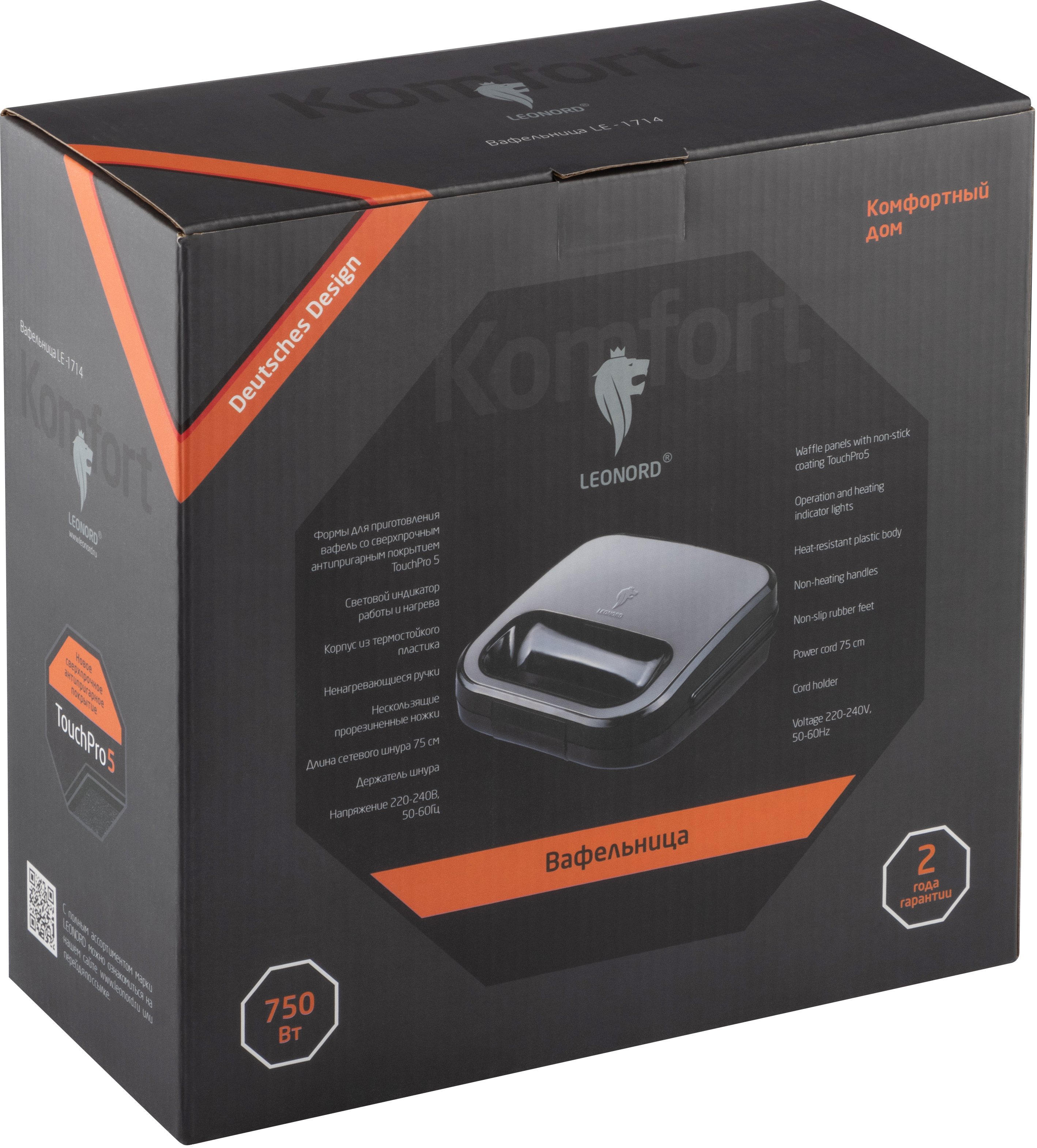 | Дополнительная информация: | Формы для приготовления вафель с сверхпрочным антипригарным покрытием TouchPro 5, Световой индикатор работы и нагрева, Корпус из термостойкого пластика, Ненагревающиеся ручки, Нескользящие прорезиненные ножки, Длина сетевого шнура 75 см, Держатель шнура, Мощность 750 Вт, Гарантия 2 года: |