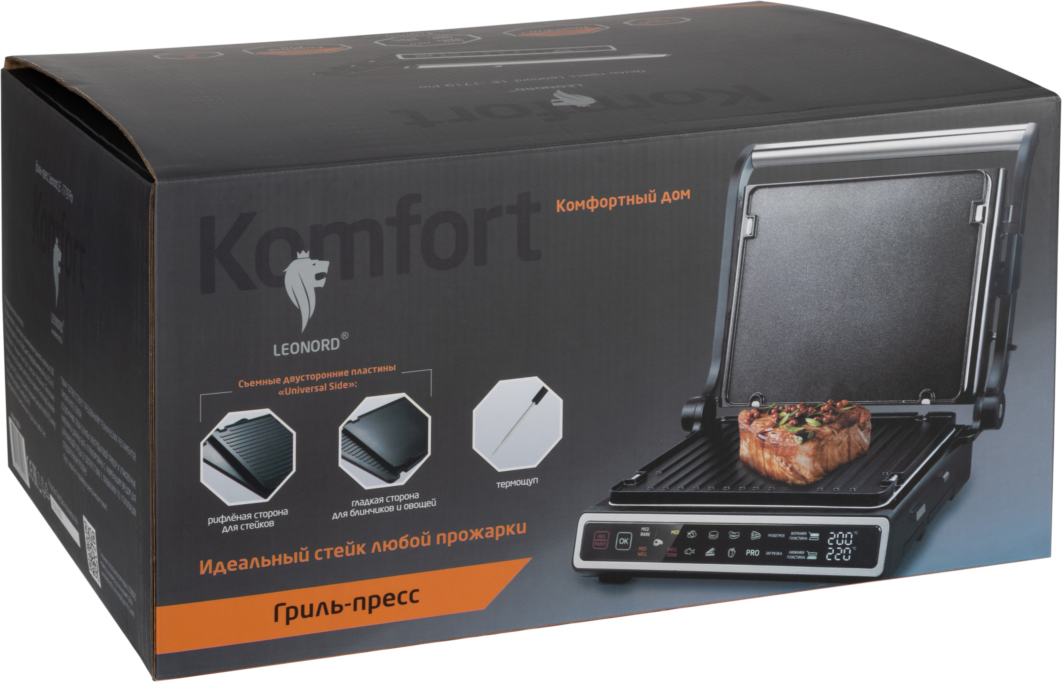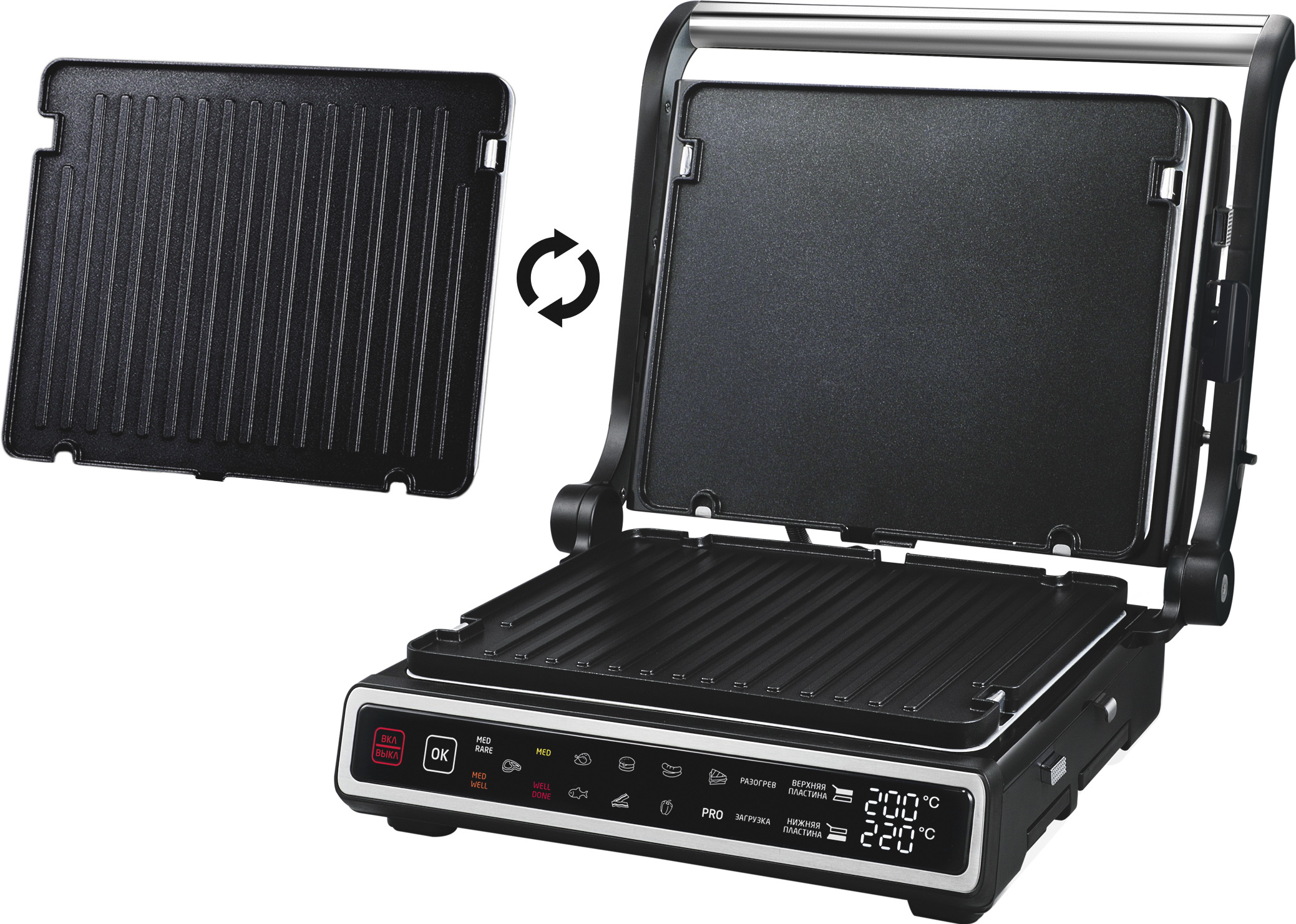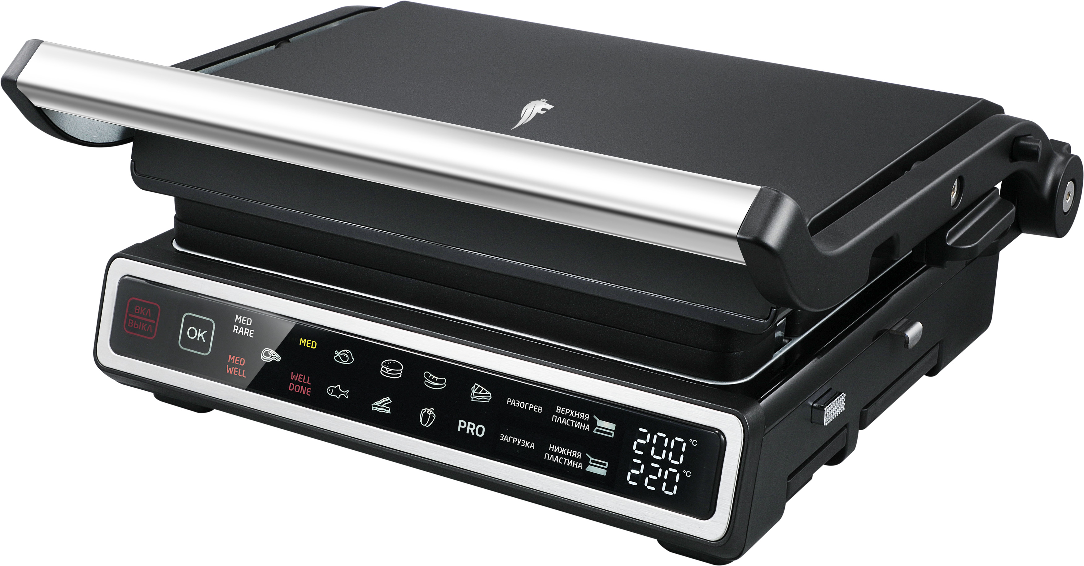 | Дополнительная информация: | Мощность 1800 Вт, Съемные двусторонние пластины ''Universal Side'' -, - рифлёная для стейков, - гладкая для блинчиков и овощей, Размер пластин 28*23,5 см, Сверхпрочное антипригарное покрытие TouchPro 7, 11 автоматических программ, 4 степени прожарки стейков, Ручной режим ''Cooking PRO'', Отдельная регулировка температуры для верхней и нижней пластины, Максимальная температура нагрева пластин 230 градусов, Дисплей, Сенсорное управление, Поддон для cбора жира, Термощуп, Режим Барбекю - раскрытие на 180 градусов, Защита от перегрева, 2 года гарантии, Пластины можно мыть в посудомоечной машине, Вертикальное хранение, Напряжение - 220-240 В, 50-60 Гц, Гарантия 2 года: |