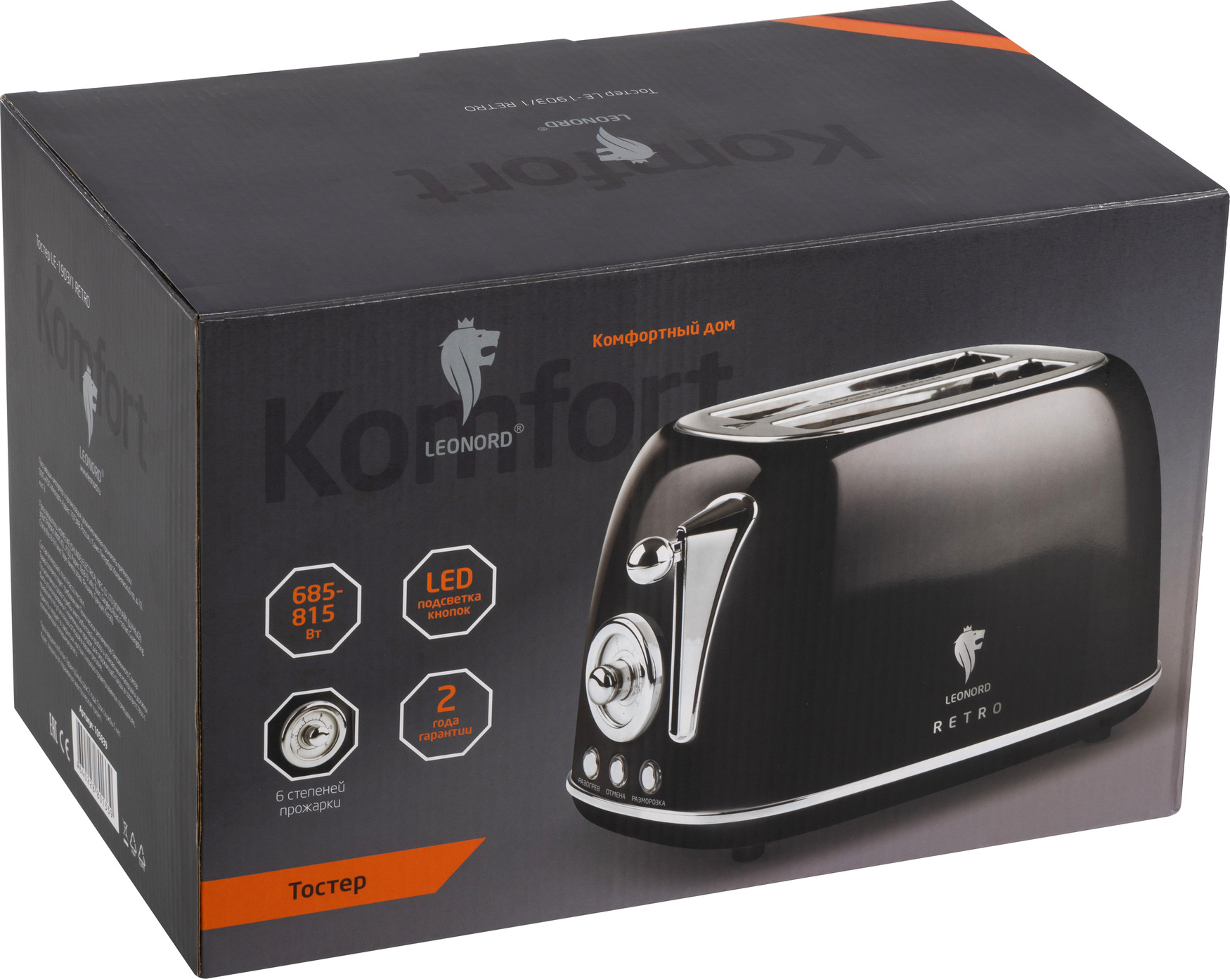 Тостер LE-1903/1, стиль ''Ретро'', цвет черный, код 105839, производитель Leonord