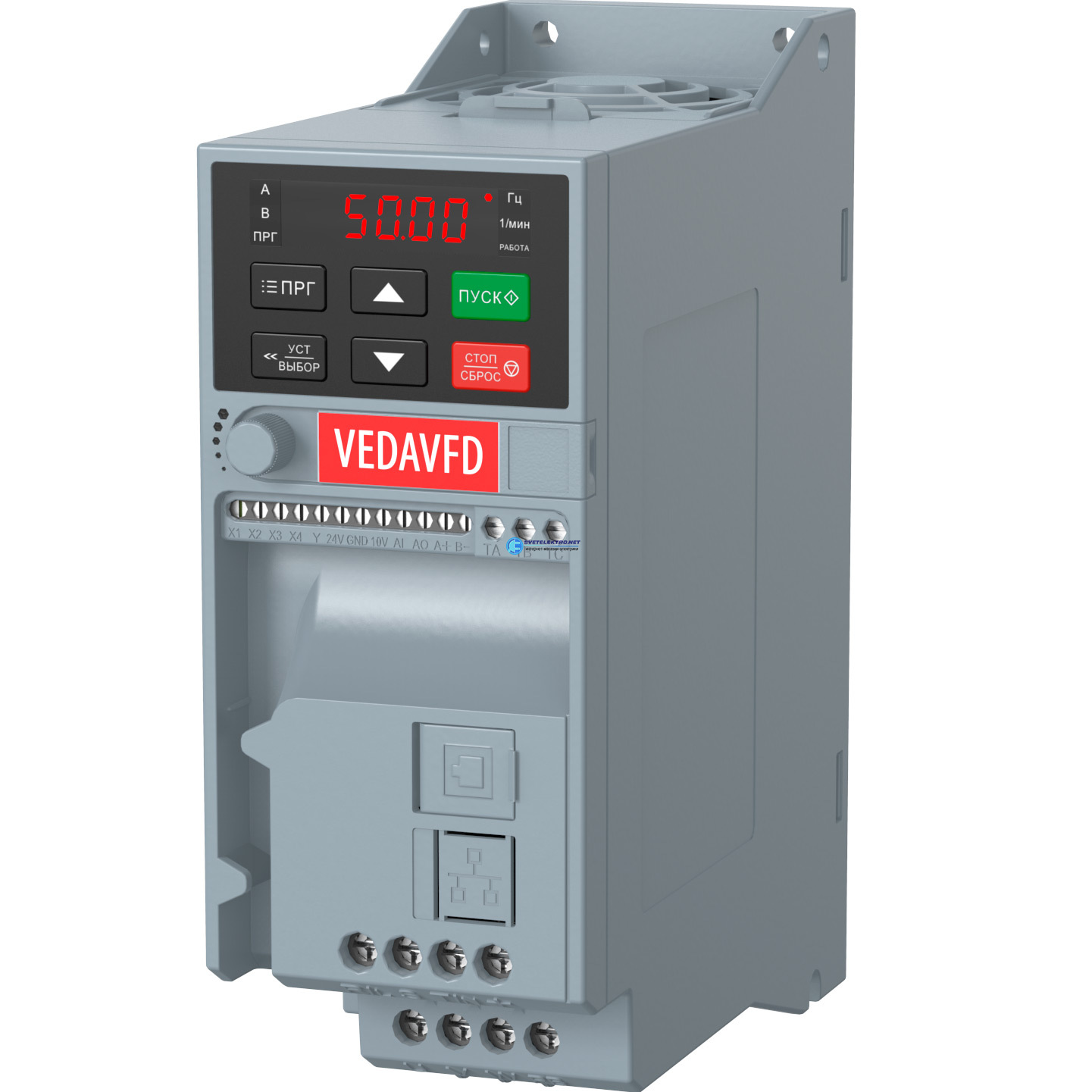 Преобразователь частоты VF-51-P4K0-0009-T4-E20-B-H Входное напряжение, 380 В. Выходная мощность 4кВт. Номинальный выходной ток 9,5 А. Ток перегрузки 1, код ABA00008, производитель VEDA MC