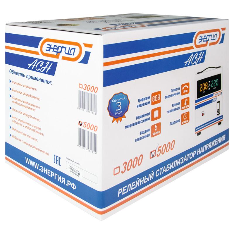 Стабилизатор напряжения релейный АСН 5000 ВА, однофазный, напольный, код Е0101-0114, производитель Энергия