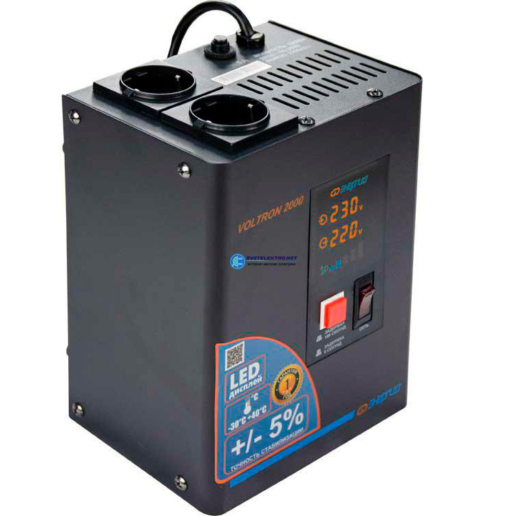Стабилизатор напряжения релейный Voltron 2000 ВА, однофазный, напольный/настенный, код Е0101-0156, производитель Энергия