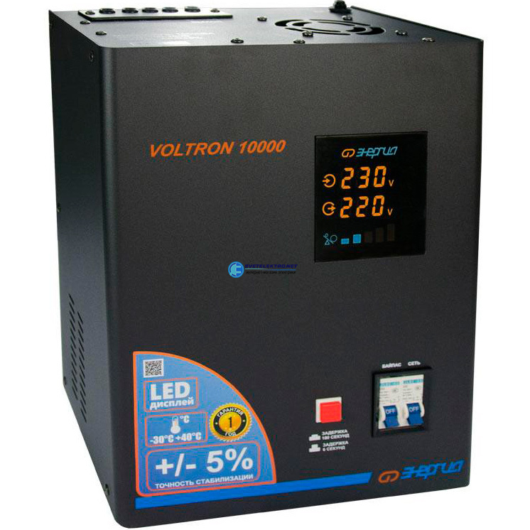 Стабилизатор напряжения релейный Voltron 10000 ВА однофазный, напольный/настенный, код Е0101-0160, производитель Энергия