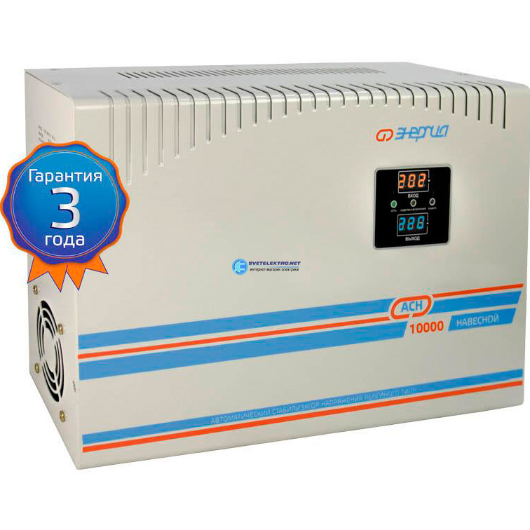 Стабилизатор напряжения релейный АСН 10000 ВА навесной, однофазный, код Е0101-0214, производитель Энергия