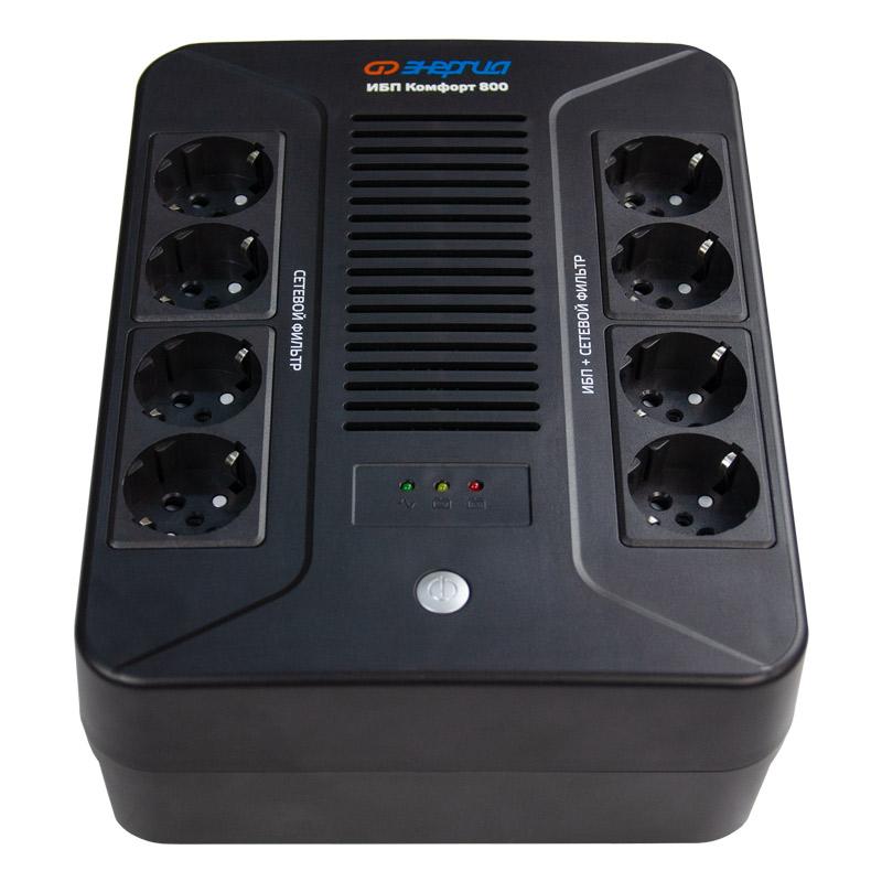 Источник бесперебойного питания line-interactive Энергия Комфорт 800 ВA/480 Вт, встроенная АКБ 12В-8 А·ч (1шт.), 8 розеток Shuko Е0201-1001 Энергия