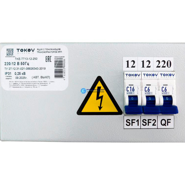 Ящик с понижающим трансформатором ЯТП 0.25 20/6 ( авт. выкл.), код TKE-TT13-36-250, производитель TOKOV ELECTRIC