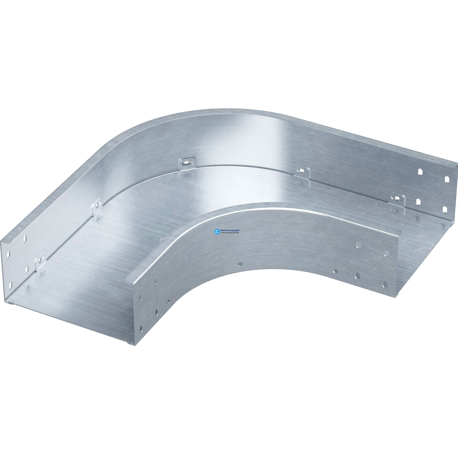| Преимущества: | Специальная толщина аксессуара позволяет увеличить несущую способность участка с аксессуаром|Аксессуар надежно соединяется с лотком при помощи пластин и крепежных элементов, которые поставляются в комплекте с аксессуаром|Крепежные элементы, поставляемые в комплекте, исключают риск возникновения коррозии и, следовательно, разрушения трассы, т.к. исполнение крепежных элементов совместимо с исполнением аксессуаров|Радиус изгиба составляет 150 мм, что позволяет прокладывать кабель с большим сечением|Аксессуар имеет плавный поворот, что защищает кабель от повреждения при его прокладке|Аксессуар выполнен в исполнении ''горячий цинк'' с толщиной цинкового слоя от 55 мкм до 120 мкм, благодаря чему может применяться, например, в помещениях с высокой влажностью и низкой загрязненностью, в воздушных зонах городов и промышленных предприятий.: |