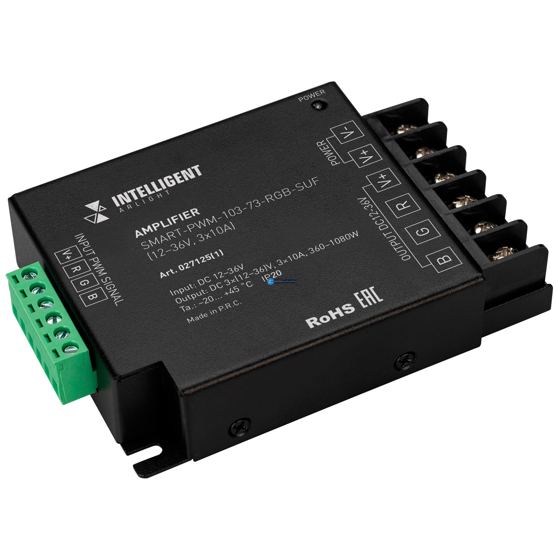 Усилитель INTELLIGENT SMART-PWM-103-73-RGB-SUF Black (12-36V, 3x10A) (IARL, IP20 Металл, лет), код 027125(1), производитель Arlight