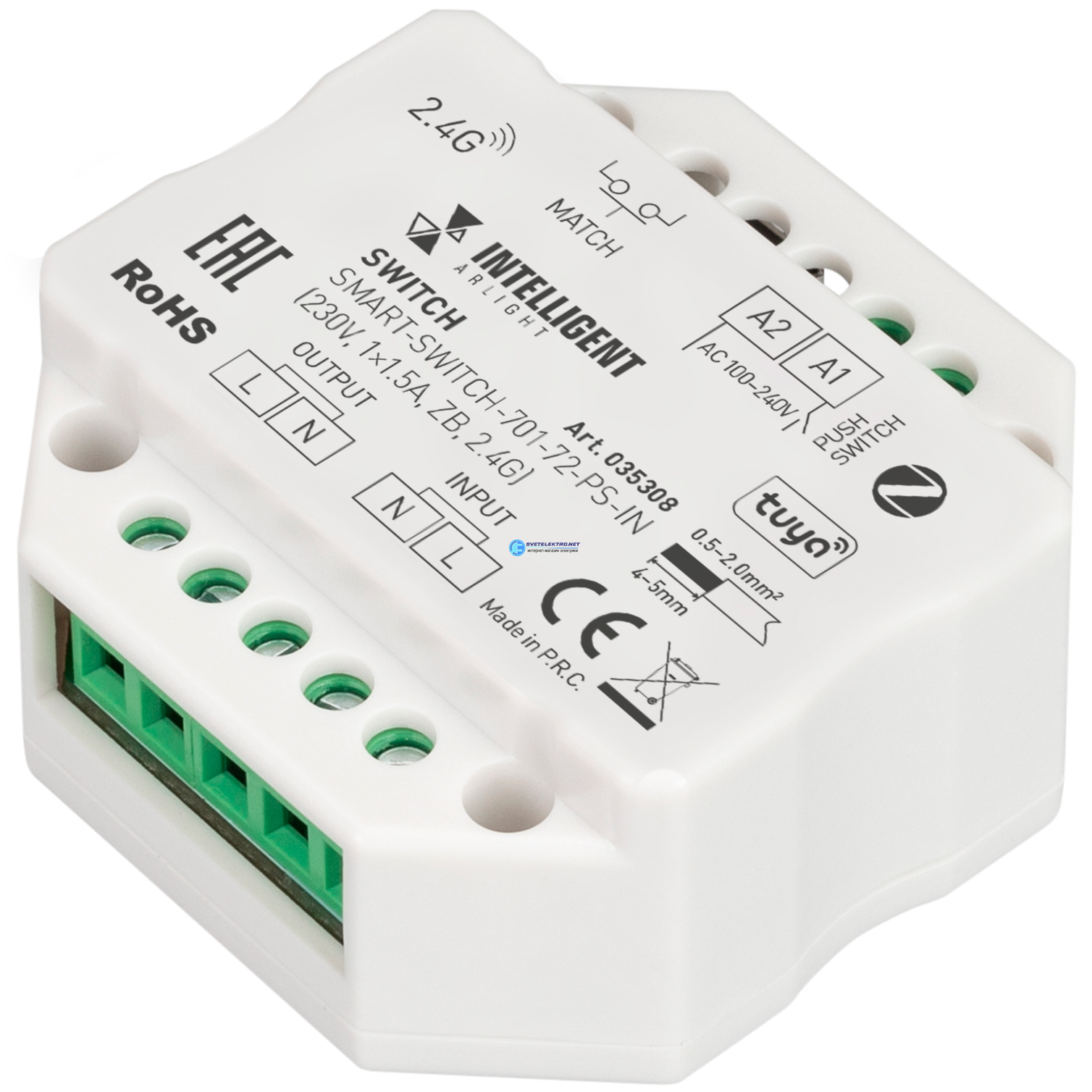 INTELLIGENT Релейный модуль SMART-SWITCH-701-72-PS-IN (230V, 1x1.5A, ZB, 2.4G) (IARL, Пластик), код 035308, производитель Arlight