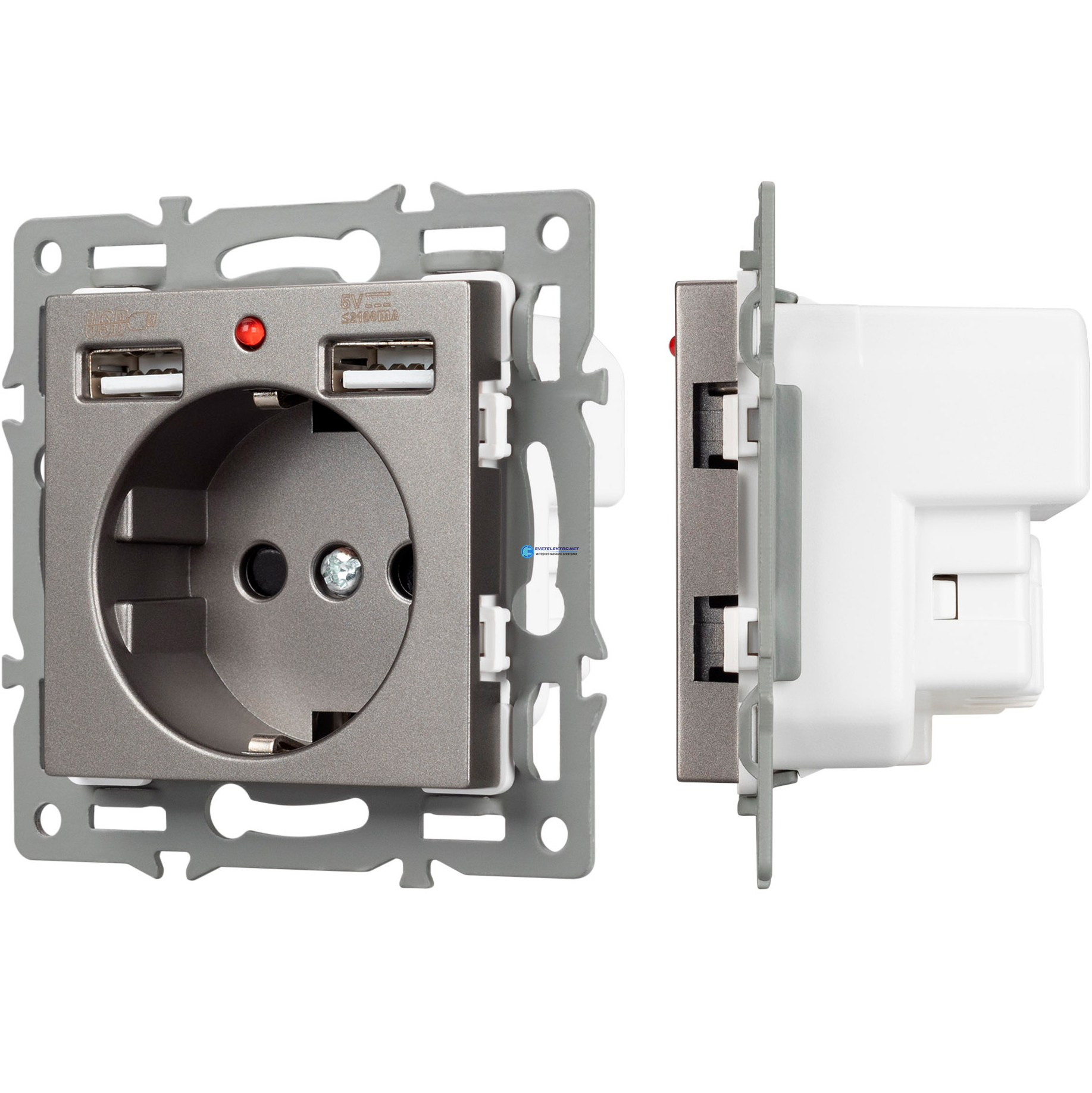Механизм розетки с USB зарядкой SCT-MUAA-PL-GR 250V, 16A, код 043735, производитель Arlight