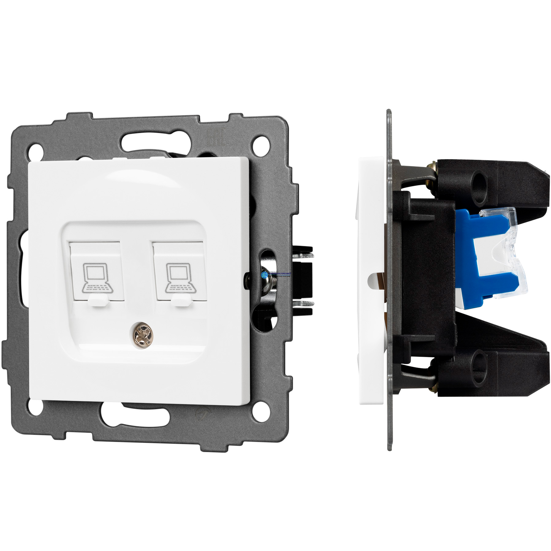 Механизм компьютерной розетки двойной SCT-MPC2-PL-WH-V RJ-45, CAT6 049854 Arlight