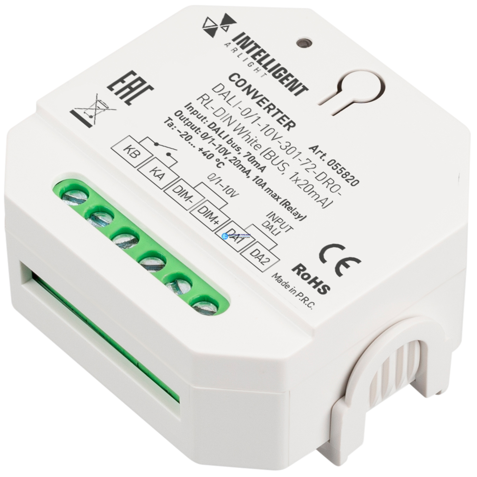 Конвертер INTELLIGENT DALI-0/1-10V-301-72-DRO-RL-DIN White (BUS, 1x20mA) (ARL, IP20 Пластик, лет), код 055820, производитель Arlight