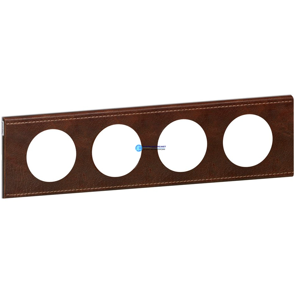 Рамка, четырехпостовая, коричневая текстурная кожа, код 069404, производитель Legrand