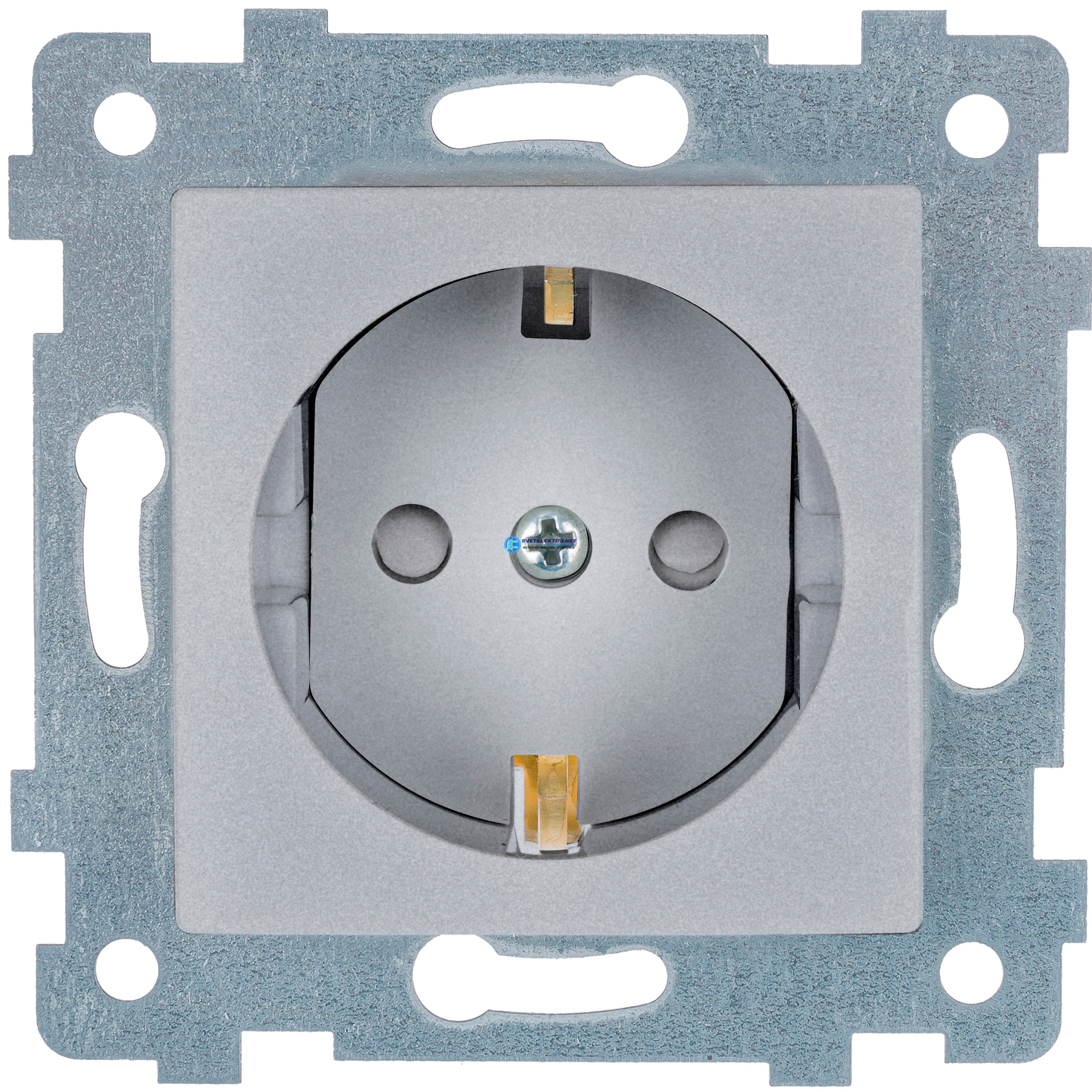 Мария Механизм розетки одноместной с з/к со шторкой скрытой установки РС16-446 Алюминий 110051 Кунцево-Электро