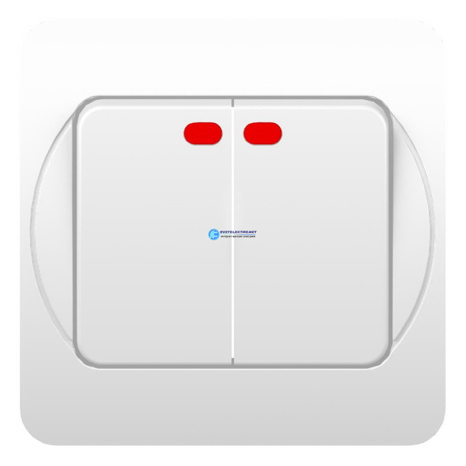 SUNNY Выключатель двухклавишный скрытый белый с индикацией 10А (5123), код 1151378, производитель Powerman