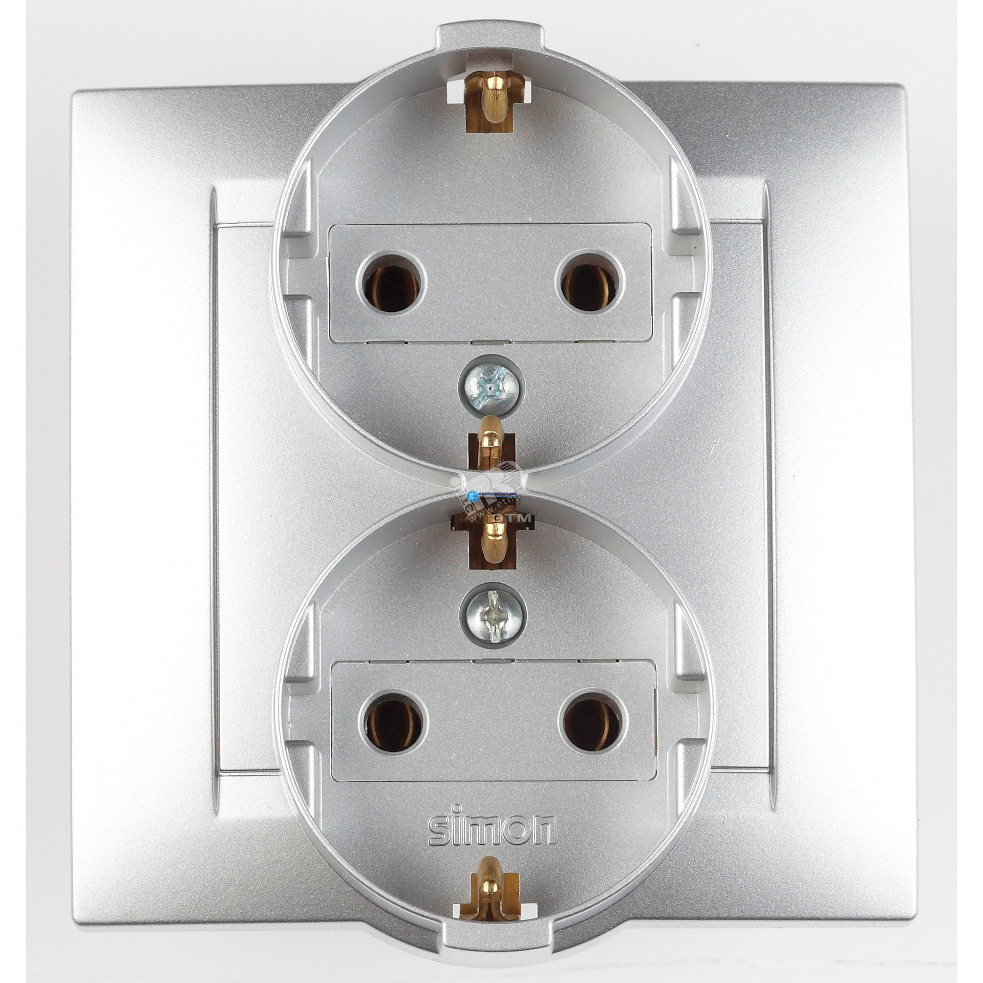 Розетка двойная 2Р+Е Schuko, 16А, 250В, винтовой зажим, алюминий, код 1590459-033, производитель Simon