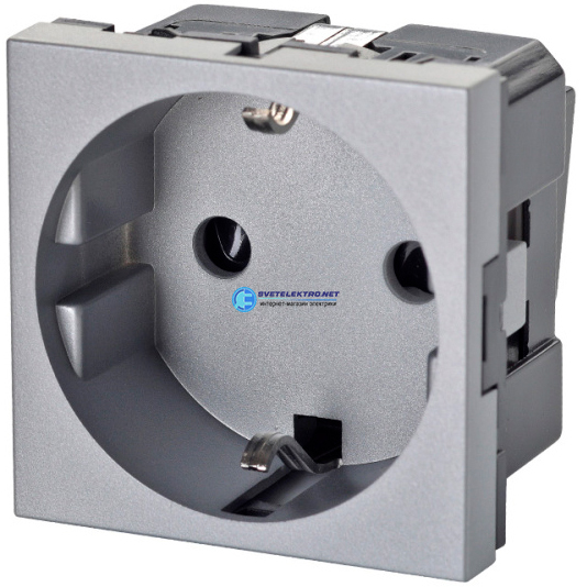 Розетка 2P+E немецкий стандарт 45 х 45 хм, с защитными шторками, серебристый 16V-10-06SL Eurolan