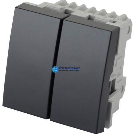 Выключатель двухклавишный 45 х 45 хм 10 250 В, графитовый черный, код 16V-20-02GS, производитель Eurolan