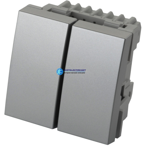 Выключатель двухклавишный 45 х 45 хм 10 – 250 В, серебристый, код 16V-20-02SL, производитель Eurolan