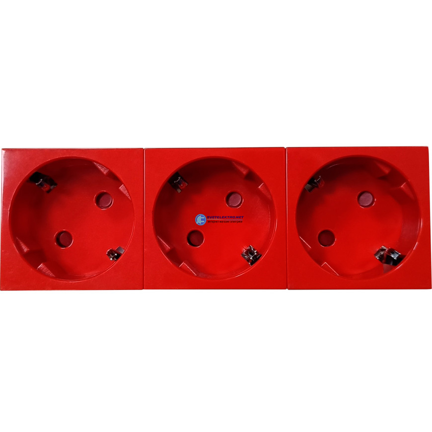 Розетка тройная 3 х 2P+E немецкий стандарт, с защитными шторками, с безвинтовым зажимом, 45 храдусов, красный, код 16V-40-11RD, производитель Eurolan