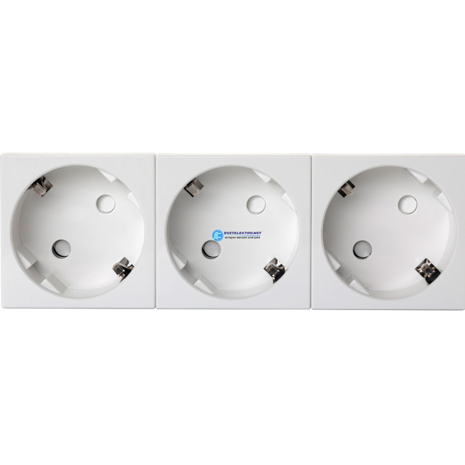 Розетка тройная 3 х 2P+E немецкий стандарт, с защитными шторками, с безвинтовым зажимом, 45 храдусов, код 16V-40-11WT, производитель Eurolan