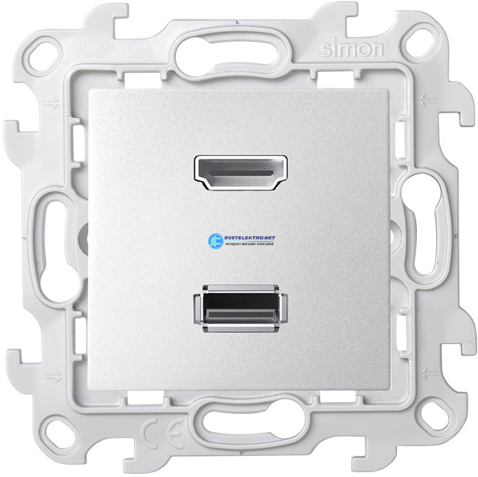 Розетка HDMI v1.4 + USB 2.0 для передачи данных цвета алюминий S24 Harmonie, код 2411095-033, производитель Simon