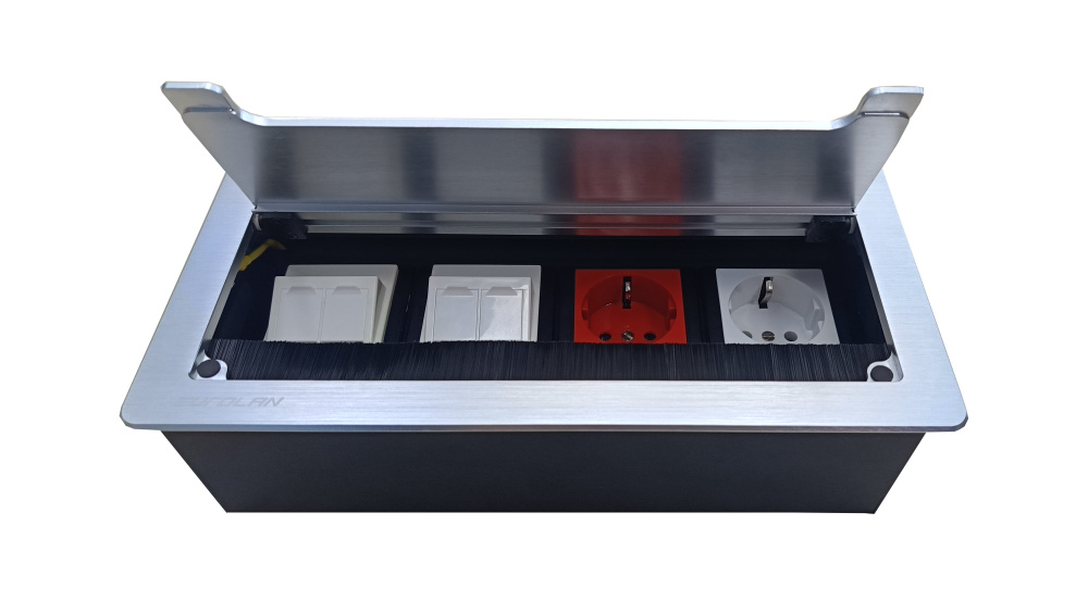 Блок розеточный настольный с открывающейся крышкой, 8 модулей 45 х 22,5 мм, серебристый, код 27T-00-10SL, производитель Eurolan