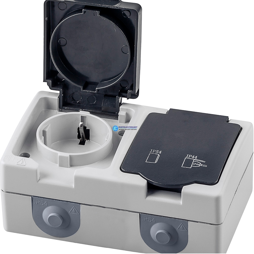 Розетка 2-местная с/з, 250В, 16А, серия Велена, серый/графит, 32754 Stekker