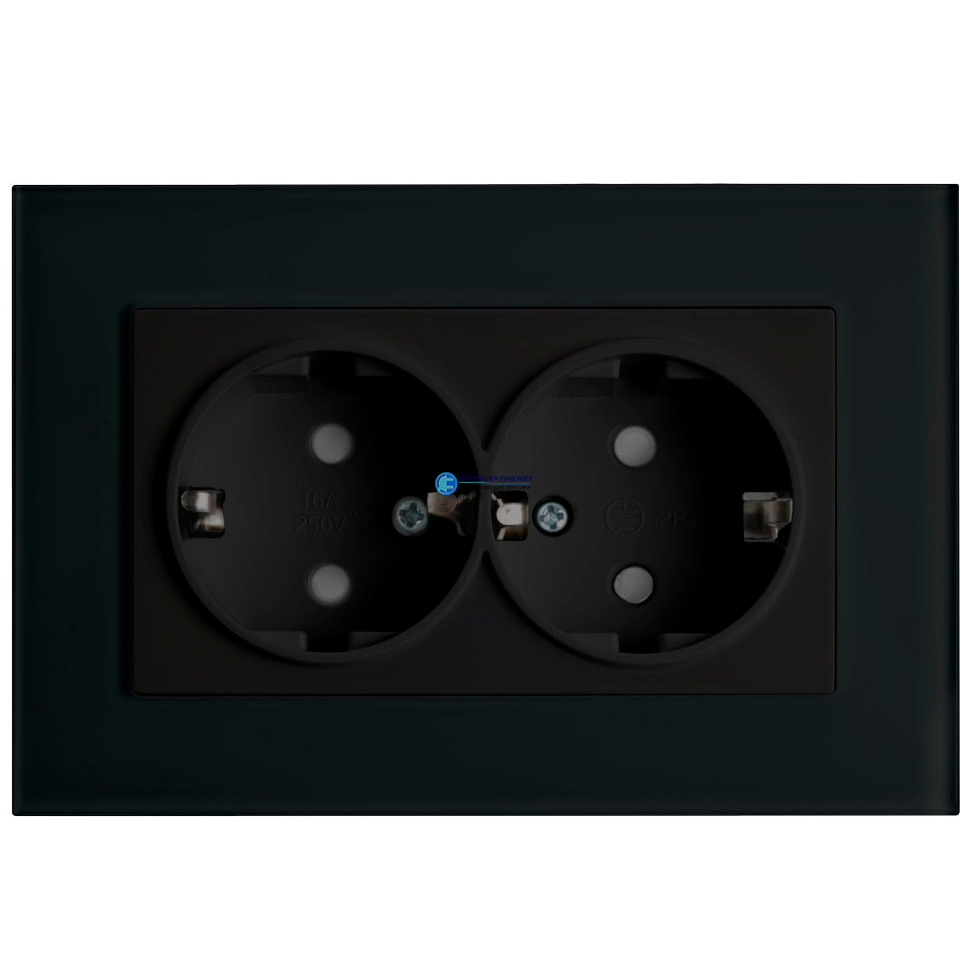 Розетка двухместная с/з,с защитной шторкой,250В, 16А, серия Эрна, черный, код 39482, производитель Stekker