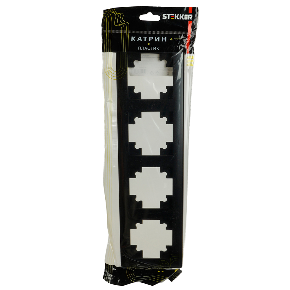 Рамка четырехместная пластик серия Катрин черный, код 39815, производитель Stekker