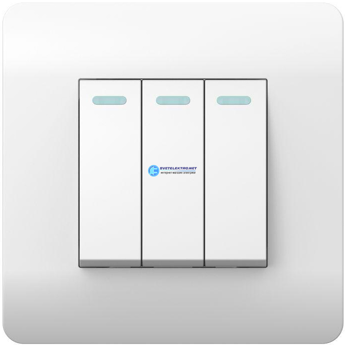 Переключатель 3-клавишный с подсветкой, 10А (NEW3-E), белый, код 431511, производитель CHINT