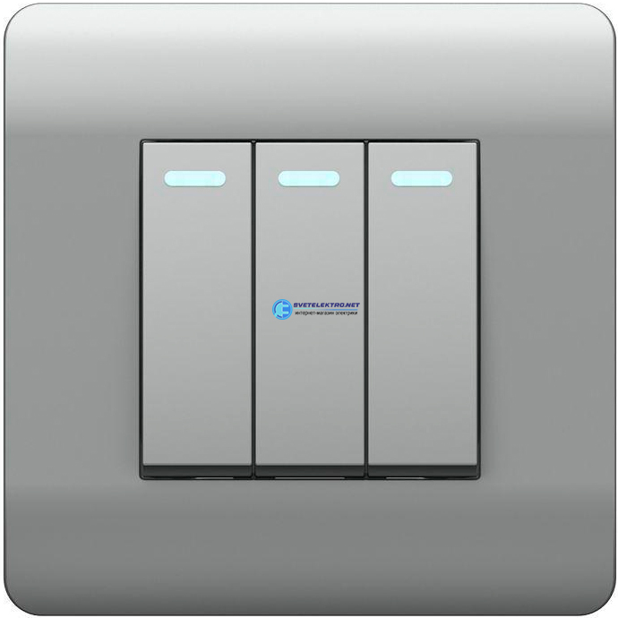Переключатель 3-клавишный с подсветкой, 10А (NEW3-E), серебряный, код 431513, производитель CHINT