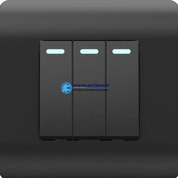 Переключатель 3-клавишный с подсветкой, 10А (NEW3-E), черный, код 431514, производитель CHINT